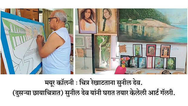 मयूर कॉलनी - रंग, रेषा आणि छटांच्या माध्यमातून कल्पनाशक्तीच्या बळावर चित्रकलेमध्ये भरारी घेतलेली अनेक उदाहरणे आपल्यासमोर आहे. व्यावसायिक आणि सामाजिक अशा दोन्ही स्तरावर चित्रकला चालत आहे. अशातच ७९ व्या वर्षीही चित्रकलेशी नाळ जोडून ठेवणारे सुनील देव यांनी काढलेली चित्रे न विकता घरातच आर्ट गॅलरी केली आहे. जवळपास २०० च्यावर येथे चित्रांचा संच तयार झाला आहे.