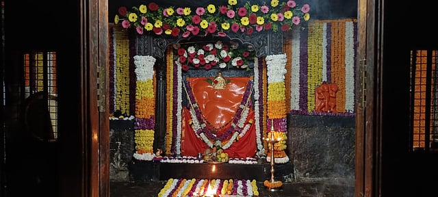 पुणे (जुन्नर) : श्री क्षेत्र लेण्याद्री ता.जुन्नर येथील अष्टविनायक गिरीजात्मज गणपती मंदिरात मंगळवार ता. २३ रोजी अंगारकी चतुर्थीनिमित्त फुलांची आकर्षक आरास करण्यात आली होती.