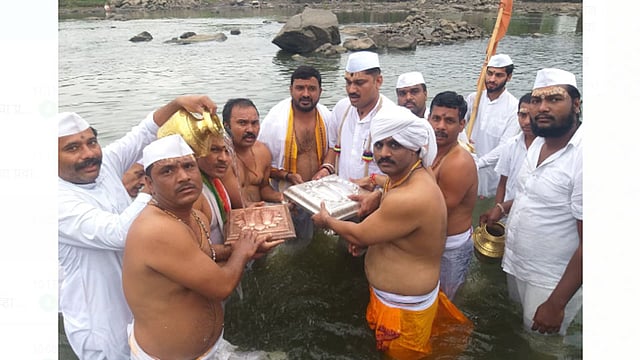 शुक्रवारी (ता. 26) पालखी सोहळ्याचा 15 वा दिवस आहे. या दिवशी वारीच्या वाटेवर पालखी सोहळा पुणे जिल्ह्यातील सराटी गावातून सोलापूर जिल्ह्यात प्रवेश करते. त्यापूर्वी संत तुकाराम महाराजांच्या पादूकांना निरा नदीत स्नान करण्यात येते. यंदा मात्र देहूतच हा कार्यक्रम संपन्न झाला. यंदा संस्थानच्या विश्वस्त आणि पालखी सोहळा प्रमुखांनी संत तुकाराम महाराजांच्या पादूकांना निरा स्नान देहूतील इंद्रायणी नदीतच केले. गुरुवारी निरा नदीतील पाणी संस्थानने आणले. त्यानंतर आज इंद्रायणी नदीत पादूकांना दोन्ही नदीच्या पाण्याने अभिषेक करण्यात आला. तसेच आरती करण्यात आली. यावेळी पुंडलिकावर देच्या गजराने इंद्रायणीचा काठ दुमदुमुन गेला. पालखी सोहळा प्रमुख विशाल महाराज मोरे, संतोष महाराज मोरे, विश्वस्त अजित महाराज मोरे, माजी विश्वस्त विश्वजित मोरे, पुंडलिक महाराज मोरे, पुजारी धनंजय मोरे व इतर उपस्थित होते.