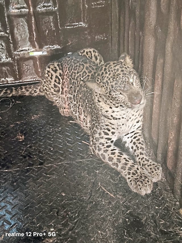 टाकळी हाजी, ता. ३० : चांडोह (ता. शिरूर) येथील हेमंत दिलीप चापुडे यांच्या शेतात लावण्यात आलेल्या पिंजऱ्यात एक बिबट जेरबंद करण्यात आला आहे. हा बिबट मादी असून तिचे वय अंदाजे तीन वर्षे आहे. जेरबंद करण्यात आलेल्या बिबट्याला सुरक्षितपणे माणिकडोह बिबट निवारा केंद्रात दाखल करण्यात आले आहे. शिरूरचे वनपरिक्षेत्र अधिकारी निळकंठ गव्हाणे व वनरक्षक लहू केसकर यांनी सांगितले की, या परिसरात मागील दोन दिवसांत एकूण तीन बिबटे जेरबंद करण्यात आले आहेत. आतापर्यंत पिंपरखेड वनहद्दीतील विविध गावांमधून एकूण ३१ बिबटे जेरबंद करून माणिकडोह बिबट निवारा केंद्रात हलविण्यात आले आहेत.