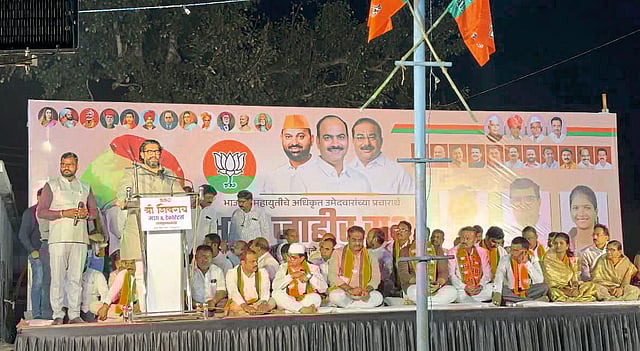 मसूर : येथील उमेदवाराच्या प्रचार सभेत जमलेली भारतीय जनता पक्ष आणि महायुती.