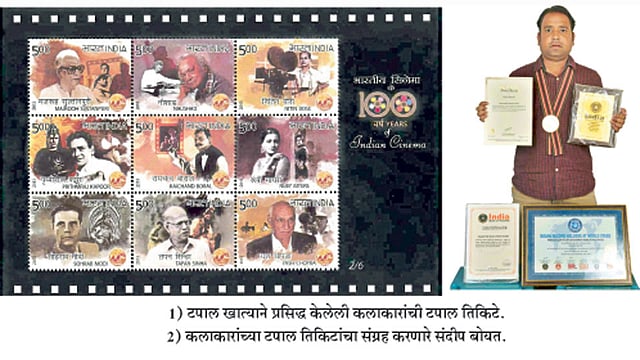 पुणे - चित्रपटातील आवडत्या कलाकारांचे फोटो किंवा त्यांच्या सह्यांचा संग्रह करणे ही अनेकांची आवड असते. मात्र, पुण्यातील संदीप बोयत हे सिनेप्रेमी गेल्या सहा वर्षांपासून चित्रपटातील कलाकारांचे टपाल तिकिटं जमा करण्याचा अनोखा छंद जोपासत आहेत. भारतीय चित्रपट क्षेत्राला १०७ वर्षे पूर्ण झाली असून, या वर्षांमध्ये चित्रपट विषयी टपाल खात्याने आजवर काढलेली तिकिटं संदीप यांच्याकडे संग्रहित आहेत. नुकतेच त्यांचे नाव ’लिम्का बुक ऑफ रिकॉर्ड’मध्ये झळकले आहे.