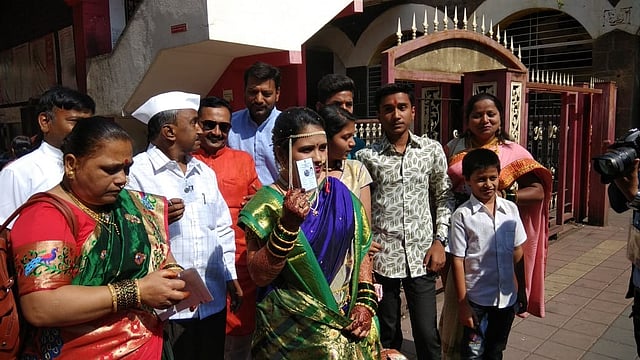 निळ्या रंगाची नऊवारी साडी आणि मुंडावळ्या बांधून केंद्रावर प्रवेश केल्यावर मतदानासाठी आलेले नागरिक तिच्याकडे पाहतच राहिले. मतदानाला जाण्यासाठी श्रद्धाला सर्वजण जागा करून देण्याचा प्रयत्न करत होते. पण ती रांगेत मतदान करणार असल्याचे तिने स्पष्ट केले.