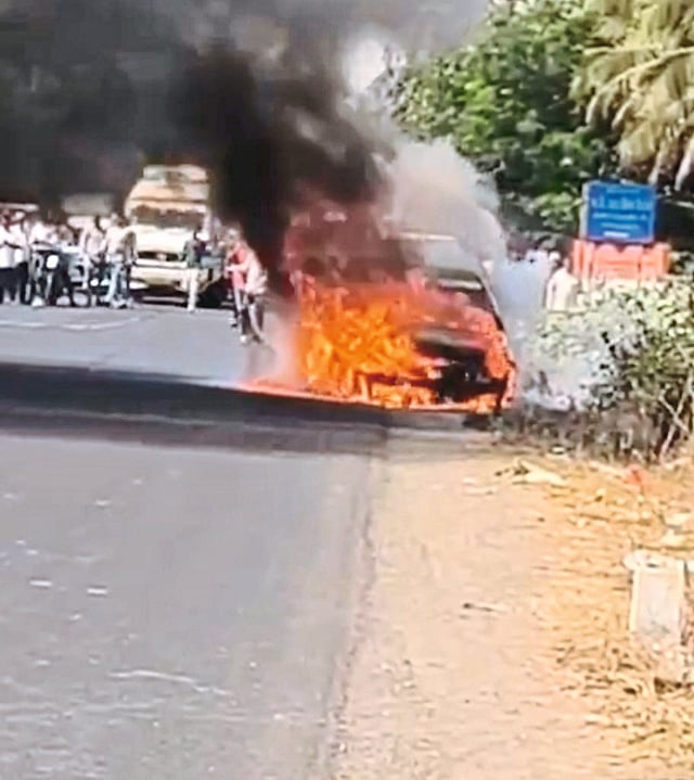 पाटस, ता.२७ः दौंड तालुक्यातील पाटस-दौंड अष्टविनायक मार्गावर शुक्रवारी (ता.२७) दुपारी "द बर्निंग मोटारी''चा थरार घडला. या घटनेत सुदैवाने कोणतीच जिवीत हानी झाली नसल्याने पुढील अनर्थ टळला. मात्र,ही आग कशामुळे लागली याबाबत संभ्रम आहे. अष्टविनायक मार्गाने पाटस वरून दौंड दिशेला जाणाऱ्या एका नामांकित कंपनीच्या मोटारीने पेट घेतल्याचा प्रकार समोर आला. गारफाटा परिसरात येताच मोटारीच्या इंजिनमधून धूर निघत असल्याचे चालकाच्या लक्षात आले. सुरक्षितेच्या दृष्टीने चालकाने मोटार सुरक्षितस्थळी उभी करून तत्काळ बाहेर पडला अन मोटारीने क्षणार्धात पेट घेतला. घटनेचे गांर्भीय लक्षात घेऊन ग्रामस्थ नितीन शितोळे यांच्यासह काही नागरीकांनी घटनास्थळी धाव घेत आग आटोक्यात आणण्याचा प्रयत्न केला. दरम्यान,आगीमुळे अष्टविनायक मार्गावरील वाहतूक पाऊणतास ठप्प झाली होती. मात्र,या घटनेबाबत सायंकाळी उशिरापर्यंत मोटार चालक किंवा मालक कोणीच पोलिस चौकीत फिर्याद देण्यासाठी आले नसल्याचे पोलिसांचे म्हणणे आहे. त्यामुळे मोटारीला आग कशामुळे लागली शिवाय मोटारीत एकूण किती प्रवासी होते.याबाबत सर्व अनभिज्ञ आहेत. याबाबत पोलिस निरीक्षक नारायण देशमुख व पोलिस उपनिरीक्षक बाळकृष्ण गाडेकर म्हणाले, घटनास्थळी पोलिस कर्मचारी जाऊन आले. संबंधित घटनेबाबत फिर्याद देण्यासाठी कोणीच आले नाही. या आगीत मोटारीची नंबरप्लेट ही जळाली.त री घटनेबाबत योग्य माहिती घेण्याचे काम सुरू आहे.