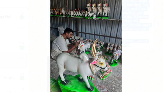 शेतीसाठी बैलांएैवजी ट्रॅक्टरचा वापर वाढल्याने शेतकर्यांच्या घरासमोर दिसणार्या बैलजोड्या दिसेनास्या झाल्या आहेत. बैलपोळा एक महीन्यावर आल्यावर बैलपोळ्याला पुजेसाठी वापरण्यात येणारे मातीचे बैल बनविण्याच्या कामाला गावोगावच्या कुंभारवाड्यामध्ये वेग येत असतो. धामणी येथील गणेश रोकडे हे मातीचे बैल बनवून त्यांना आकर्षक रंगकाम करतात त्यांनी बनवलेल्या बैलांना ग्रामिण भागाबरोबर शहरी भागातुनही मागणी असते.