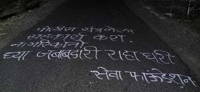 टाकवे बुद्रुक : कोरोनाच्या पार्श्वभूमीवर आंदर मावळातील नागरिकांनी शासकीय यंत्रणेस सहकार्य करावे, या उद्देशाने सेवा फाऊंडेशन या सामाजिक संस्थेतील युवकांकडून रस्त्यावर कोरोना विषयी विविध संदेश लिहून जनजागृती केली जात आहे.