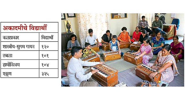 पिंपरी - ‘साऽ रेऽ, रेऽ गऽ, गऽ मऽ...’ असे सूर एकीकडे ऐकू आले. त्याचवेळी दुसऱ्या कक्षातून हार्मोनिअमचे स्वर कानी पडले. थोडं पुढे गेल्यावर ‘धाऽ धींऽ धींऽ धाऽ... धाऽ तींऽ तींऽ ताऽ...’ या तबल्याच्या बोलांनी लक्ष वेधून घेतले. प्रत्येक कक्षात विद्यार्थी भारतीय बैठकीत बसलेले होते. यात महिला व मुलींची संख्या लक्षणीय होती. गुरुजी तन्मयतेने शिकवत होते. शिष्य एकाग्रतेने ऐकून गुरुजींप्रमाणे गायन, वादन करीत होते. असे चित्र बुधवारी (ता. १३) महापालिकेच्या निगडीतील संगीत अकादमीत बघायला मिळाले.