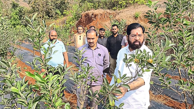 कास, ता. २२ ः उपमुख्यमंत्री एकनाथ शिंदे हे सध्या आपल्या दरे या मूळगावी दोन दिवसांच्या खासगी दौऱ्यावर आले आहेत. धावपळीच्या राजकीय जीवनातून थोडा वेळ बाजूला काढत उपमुख्यमंत्री शिंदेंनी आज सकाळीच आपल्या शेतात हजेरी लावली. यावेळी त्यांनी केवळ फेरफटकाच मारला नाही, तर प्रत्यक्ष राबून शेतात ॲव्होकॅडो या विदेशी फळझाडांची लागवड केली.