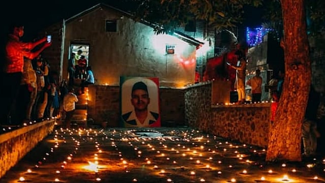 राजगुरूनगर - जाणीव परिवार या संस्थेच्या वतीने सलग सहाव्या वर्षी राजगुरूवाड्यावर एक हजार दीप लावून शहीद राजगुरु यांच्या जन्मस्थळी दीपोत्सव साजरा करण्यात आला. या वेळी जाणीव परिवाराच्या वतीने हजारो पणत्या लावण्यात आल्या होत्या. त्या उजेडाने राजगुरूवाडा उजळून निघाला होता. मयुर पाचारणे यांनी बासरीवर, तर संदीश शिंदेकर यांनी ढोलकीवर देशभक्तिपर गीते सादर केली.