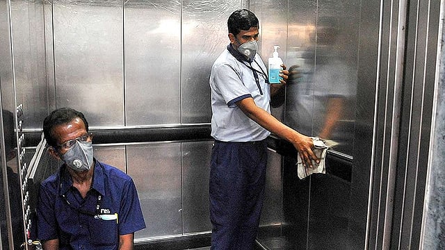 - इमारतीमध्ये लिफ्ट (उदवाहन) असल्यास त्याचे किंवा गेट या सर्व ठिकाणाचे वेळोवेळी निर्जंतुकीकरण करण्यात यावे.