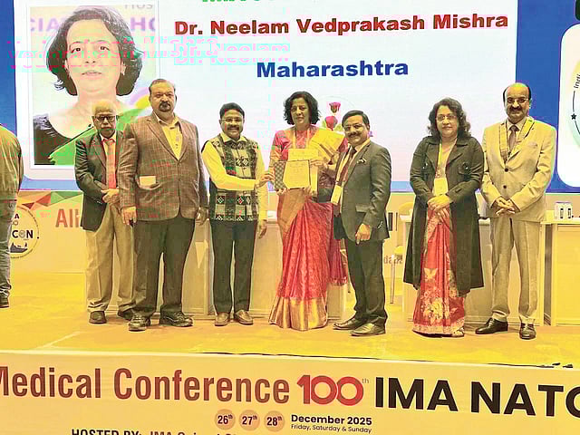 अहमदाबाद : इंडियन मेडिकल असोसिएशनचा ‘प्रोफेसर एमेरिटस’ पुरस्कार स्वीकारताना कुलगुरू डॉ. नीलम मिश्रा.