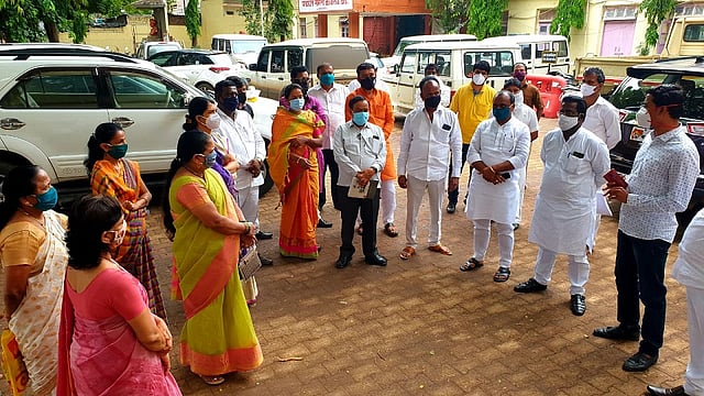 राजगुरूनगर (पुणे) : शिवसेना आणि राष्ट्रवादी काँग्रेसच्या मतभेदामुळे खेड पंचायत समितीच्या नवीन इमारतीचे काम रखडल्याबद्दल शिवसेना पदाधिकाऱ्यांनी जिल्हा परिषदेच्या खेड विभागाच्या उपअभियंत्यांना आज घेराव घातला. तसेच, मंजूर इमारतीच्या नियोजित जागेतच काम सुरू करण्याचा आग्रह धरून काम सुरू होण्यासाठी त्या जागेतील झाडे तोडली.