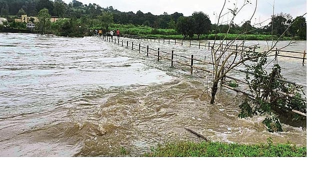 आंबेठाण (पुणे) : जोरदार पावसामुळे खेड तालुक्यातील भामा आसखेड धरण पुन्हा शंभर टक्के भरल्याने आणि धरणात पाण्याची आवक मोठ्या प्रमाणात होत असल्याने धरणातून 11 हजार 527 क्युसेकने विसर्ग सुरू करण्यात आला आहे. त्यामुळे भामा नदीची दोन खोरी जोडणारा धामणे पूल पाण्याखाली गेला आहे. परिणामी दोन्ही भागातील दळणवळण ठप्प झाले असून, नागरिकांना रस्ता बंद झाल्याने माघारी परतावे लागले आहे.