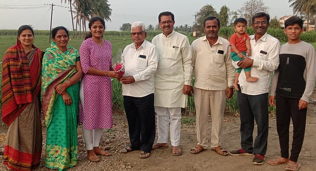 मांडवगण फराटा, ता. शिरूर : सनदी लेखापाल परीक्षेत यश मिळविलेल्या आरती फराटे हिचे अभिनंदन करताना दादा पाटील फराटे सोबत आई, वडील व कुटुंबीय.