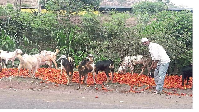 एक एकर क्षेत्रातील टोमॅटो काढणीला आली आहे. मागणी नसल्याने रोपे, औषधे व मजुरीसाठी एकरी 30 ते 35 हजार रुपये केलेला खर्च वाया गेला आहे. मोलाचा टोमॅटोचे पीक अक्षरशः जनावरांना टाकावे लागत आहे.