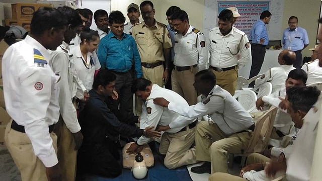हडपसर वाहतूक शाखा, सह्याद्री सुपर स्पेशालीटी हॅास्पीटल व बी. व्ही. जी. यांच्या संयुक्त विदयमाने या कार्यशाळेचे आयोजन करण्यात आले होते. या कार्यशाळत परिमंडळ चार मधील हडपसर, वानवडी, विश्रांतवाडी, कोंढवा, खडकी आणि येरवडा वाहतूक शाखेतील ५० पोलिस कर्मचारी व अधिका-यांनी सहभाग घेतला.