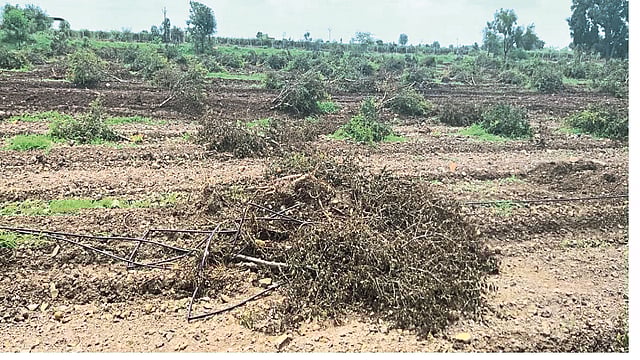 प्रकल्पासाठी दिलेल्या जमिनीच्या बदल्यात ही जमीन मिळाली होती. कोणतीही सूचना न देता वनविभागाने केलेल्या कारवाईमध्ये डाळिंब, ऊस, भुईमूग, जनावराचा गोठा या सर्वांवर वरवंटा फिरविला आहे. यामध्ये सुमारे चाळीस ते पंचेचाळीस लाखांचे नुकसान झाले आहे, असे शेतकरी सुनील बागल यांनी सांगितले.