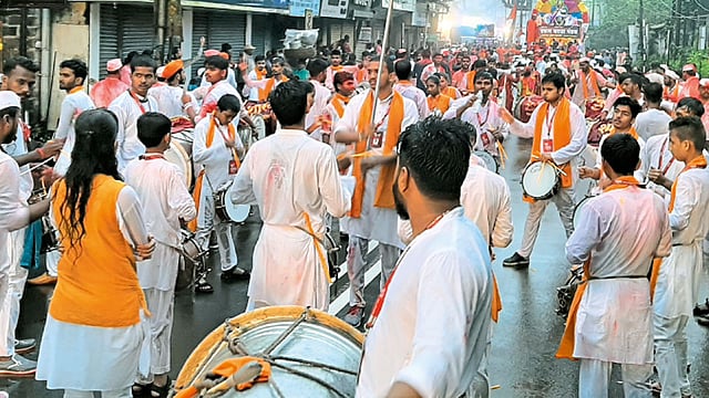 लोणावळा - ढोल-ताशांचा गजर, गुलालाची उधळण, पावसाच्या सरींची साथ अशा वातावरणात ‘गणपती बाप्पा मोरया पुढच्या वर्षी लवकर या’ असा जयघोष करीत गणरायाला निरोप देण्यात आला. डीजेविरहित सात तास चाललेली मिरवणूक हे मिरवणुकीचे वैशिष्ट्य ठरली.