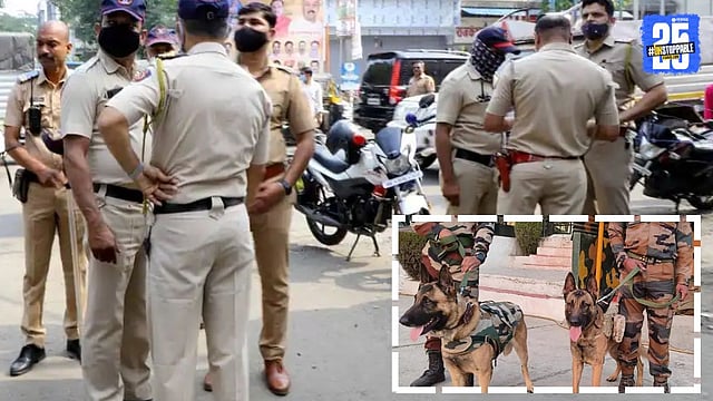Security personnel outside Hinjewadi International School in Pune after a bomb threat triggered an emergency response by local authorities.