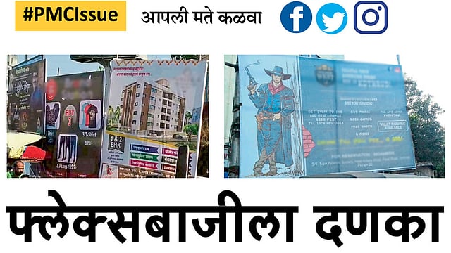 पौड रस्ता - कोथरूडमधील होर्डिंग, फ्लेक्स, बॅनरबाजीचे पेव नागरिकांच्या चर्चेपुरतेच मर्यादित होते; मात्र सोशल मीडियावरील एका व्हिडिओने झोपेचे सोंग सोडून खडबडून प्रशासन जागे झाले आणि कारवाईसाठी सरसावले; मात्र ३० फ्लेक्स, १२५ छोटे फलक हटविण्याव्यतिरिक्त कोणतीही कारवाई झालेली नाही. हे फलक अधिकाऱ्यांनाच का बरे दिसेनात कि अधिकारी ‘अर्थपूर्ण’ दुर्लक्ष करतात, असे अनेक प्रश्न नागरिकांनी सोशल मीडियावर लावून धरले होते.