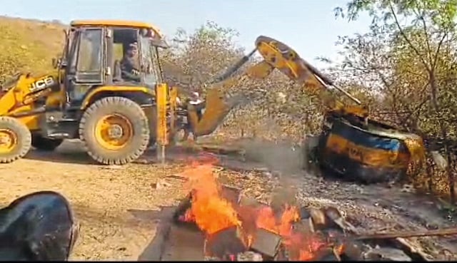 चाकण, ता. ३ : खेड तालुक्यातील काळूस-संगमवाडी आणि रासे येथे पोलिसांनी गावठी दारूच्या हातभट्ट्यांवर छापे टाकून सुमारे १३ लाख रुपये किमतीचे २४ हजार लिटर रसायन नष्ट केले. ही कारवाई जेसीबीच्या साह्याने करण्यात आली असून, दोन आरोपींविरुद्ध गुन्हे दाखल करण्यात आले आहेत, अशी माहिती चाकण उत्तर पोलिस ठाण्याचे वरिष्ठ निरीक्षक जितेंद्र कदम यांनी दिली.