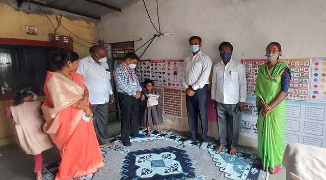 रेडणी ( ता. इंदापूर ) : येथील जिल्हा परिषद प्राथमिक शाळेच्या उपशिक्षिका श्रीमती सुप्रिया आगवणे व मुख्याध्यापिका अनिता जाधव यांनी कोरोना महामारीमुळे विद्यार्थ्यांचे शैक्षणिक नुकसान होवू नये म्हणून पालकांच्या सहकार्याने घरोघरी शाळा हा नाविन्यपूर्ण उपक्रम सुरू केला. या उपक्रमाची दखल घेत गटविकास अधिकारी विजयकुमार परिट व गटशिक्षणाधिकारी राजकुमार बामणे यांनी या फिरत्या नावीन्यपूर्व शाळेस भेट देवून शिक्षक व पालकांचे कौतुक केले.