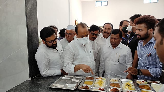 जुन्नर बाजार समितीने नारायणगाव उपबजारात सुरू केलेल्या शरदचंद्रजी पवार भोजन थाळीचा शुभारंभ आज(ता.२२) दुपारी राज्याचे उपमुख्यमंत्री अजित पवार यांच्या हस्ते झाला. या निमित्ताने येथील उपबजारात आयोजित कार्यक्रमास आमदार अतुल बेनके, उपसभापती दिलीप डुंबरे, जेष्ठ संचालक निवृत्ती काळे, धनेश संचेती, प्रकाश ताजणे , संतोष घोगरे ग्रामोन्नती मंडळाचे कार्याध्यक्ष अनिल मेहेर, अध्यक्ष प्रकाश पाटे, जिल्हा परिषद सदस्य पांडुरंग पवार, शरद लेंडे, मोहित ढमाले, गुलाबराव नेरकर, विनायक तांबे, तुळशीराम शिंदे, बाजार समितीचे सचिव रुपेश कवडे , उपसचिव शरद घोंगडे आदी उपस्थित होते. या वेळी तयार केलेल्या थाळीची पहाणी उपमुख्यमंत्री पवार यांनी केली, कोणता तांदूळ वापरता, किती भाज्या देणार, या भोजन थाळीची किंमत काय आदींची माहिती सभापती काळे यांच्याकडून त्यांनी घेतली.