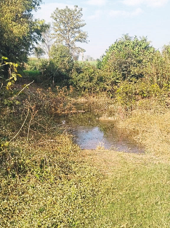 आणे ः साठवण बंधाऱ्यातील फुगीमुळे देसाई मळ्याकडे जाणाऱ्या रस्त्यावर आलेले पाणी.