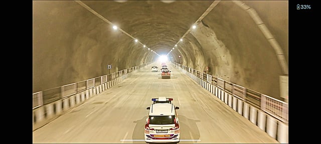 - एक किलोमीटर ३०० मीटर लांबीच्या तीन लेनच्या बोगद्यातून वाहतूक