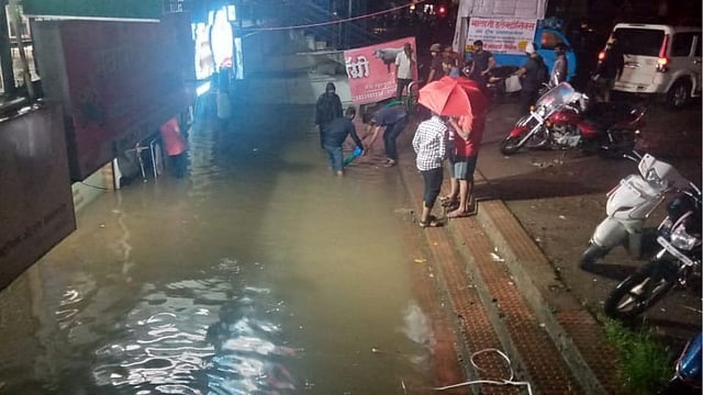 किरकटवाडी (पुणे) : सलग दुसऱ्या दिवशी झालेल्या मुसळधार पावसामुळे ड्रेनेज तुंबून किरकटवाडी (ता.हवेली) येथील सिंहगड रस्त्याला लागून असलेल्या दोन इमारतींमधील जवळपास वीस दुकानांमध्ये गुडघ्याच्या वर पाणी शिरले. लॉकडाउननंतर व्यवसाय सुरळीत होत असताना सलग दोन दिवस दुकानांमध्ये पाणी शिरल्याने व्यावसायिकांचे खूप मोठे नुकसान झाले आहे.