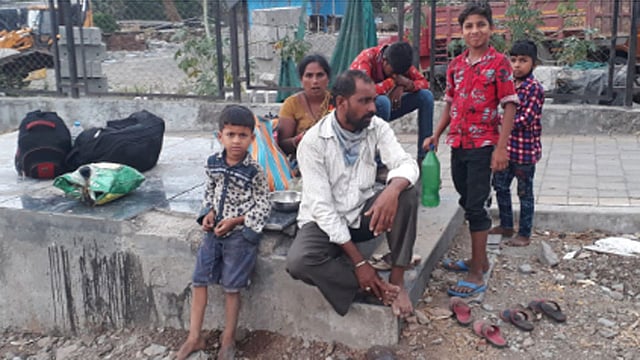 मुंबई बांद्रा येथे एका बांधकाम व्यावसायिकाकडे राहत असलेल्या मजुरांना बांधकाम व्यावसायिकाने हाकलून दिल्यामुळे हे मजूर आपल्या मूळ गावी म्हणजे कर्नाटकला पायी चालत निघाले आहे. यामध्ये दोन कुटुंबांचा समावेश असून यात सहा लहान मुलांचा समावेश आहे. तीन दिवसांपूर्वी ते मुंबईतून पायी निघाले असून बरोबर रस्त्यामध्ये खायला लागणारी शिदोरी फक्त बरोबर घेतलेली आहे. तीच पुरवून खात आहेत. सगळीकडे बंद असल्यामुळे रस्त्यात कुठेही त्यांना खाण्यास मिळत नाही, तसेच कोरोना च्या भीती मुळे कोणीही वाहनचालक त्यांना बरोबर घ्यायला तयार नाहीत. कुटुंब ही पायी चालत आपल्या घरी गावी निघाल्याचे चित्र बालेवाडी जवळील मुंबई - बंगलुर महामार्गावर पाहायला मिळाले.