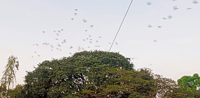पहाटेच्या मंद वाऱ्यासह सूर्योदयाची चाहूल लागताच पुन्हा एकदा किलबिलाट उसळतो आणि हे पक्षी खाद्याच्या शोधार्थ चारही दिशांना उडून जातात.काही क्षणांतच गजबजलेला परिसर पुन्हा शांत होतो.