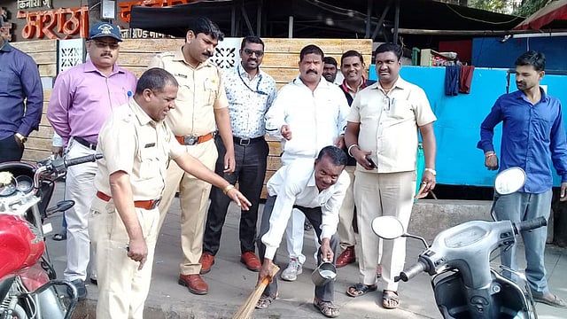 पौडरस्ता (पुणे) : नेहमीच्या सवयीप्रमाणे टपरीवरुन पान खायला घेतले...स्टाईलमध्ये थुंकत रस्त्यावर आपली सार्वजनिक मालकी असल्याची निशाणी सोडली...या सर्व हालचालींवर बारीक नजर ठेवून असलेल्या कोथरुड क्षेत्रिय कार्यालयाच्या कर्मचाऱ्यांनी त्याचे अभिनंदन करत, साहेब, तुम्ही घाण केलेला रस्ता पाणी टाकून, खराट्याने स्वच्छ करा...अशी नम्र विनंती केली. सर्वांदेखत आपला पोपट बनला आहे हे लक्षात येताच त्याने चूक कबूल करत रस्ता साफ करुन दिला. तसेच महापालिकेने आकारलेली दंडाची रक्कम भरत पुन्हा असे करणार नाही, अशी प्रतिज्ञा करत 'स्वच्छ भारत अभियान'ला पाठिंबा दिला.
