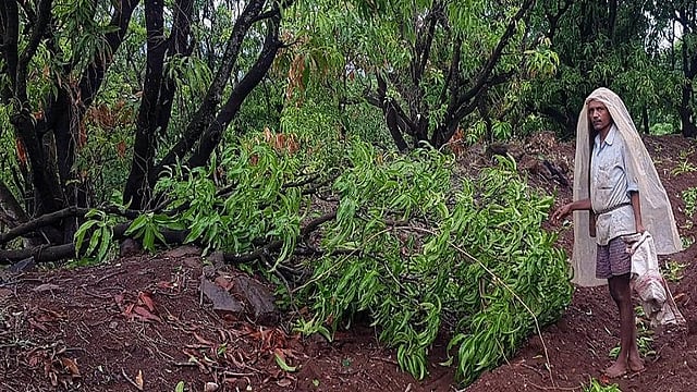 मुळशी तालुक्यात गेल्या हंगामात नोव्हेंबर महिन्यापर्यंत पाऊस पडला. त्यामुळे आंबा पिकाची मोहोर धारणा खूप उशिरा झाली. त्यानंतरही वारंवार ढगाळ वातावरण असल्याने मोठ्या प्रमाणावर आलेला मोहोर गळून पडला. त्यामुळे हापूस, पायरी या वाणाच्या आंब्यांना फळधारणा झालीच नाही. सध्या केवळ केशर जातीच्या आंब्यांना अल्प प्रमाणात फळे लागलेली असून, जून महिना निम्मा संपत आला, तरी या केशर आंब्याच्या फळांना पाड लागलेला नाही. त्यामुळे ही फळे झाडावरच होती. त्यामुळे नुकत्याच झालेल्या चक्रीवादळाने ही फळे गळून पडली. बरीच झाडे मुळासकट तर काही झाडांच्या फांद्या मोडून जमीनदोस्त झाल्या.