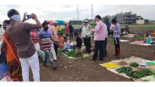 मंत्री भरणे हे इंदापूर येथे कोरोना आढावा बैठकीसाठी येत होते. त्यावेळी त्यांना इंगुले मैदानावर गर्दी दिसल्याने ते गाडीतून खाली उतरले. अचानक भाजी मंडईत मंत्री भरणे यांना पहाताच अनेकांची भंबेरी उडाली. भरणे यांनी हात जोडून सर्वाना चेहऱ्यास मास्क वापरण्याची विनंती केली. सर्वांनी सामाजिक अंतर पाळावे अशी विनंती केली.