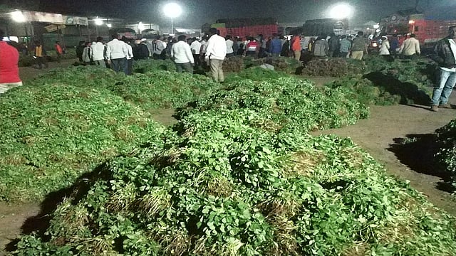 नारायणगाव उपबाजारात रात्री कोथिंबीर व मेथीच्या चार लाख जुड्यांची आवक झाली. कोथिंबिरीच्या जुडीला सहा ते सात रुपये; तर मेथीच्या जुडीला तीन ते चार रुपये भाव मिळाला. नोव्हेंबर महिन्यात कोथिंबिरीच्या जुडीला सरासरी पन्नास ते साठ रुपये, तर मेथीच्या जुडीला वीस ते पंचवीस रुपये भाव मिळाला होता. 9 नोव्हेंबर रोजी झालेल्या लिलावात कोथिंबीर जुडीला उच्चांकी ऐंशी रुपये ते नव्वद रुपयांदरम्यान भाव मिळाला होता.