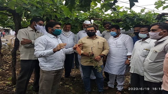 जुन्नर तालुक्यातील गोळेगाव येथे चक्रीवादळाने द्राक्ष पिकांच्या झालेल्या नुकसानीची प्रशासकीय दौऱ्यात पाहणी करून खासदार अमोल कोल्हे व आमदार अतुल बेनके यांनी शेतकऱ्यांबरोबर चर्चा केली. या वेळी द्राक्ष उत्पादक शेतकऱ्यांनी त्यांच्या व्यथा मांडल्या आणि या व पुढच्या हंगामातही द्राक्ष उत्पादक कसा अडचणीत आला आहे, हे कृषी अधिकाऱ्यांसमोर सविस्तर सांगितले. तसेच, विमा काढूनही मागील काळात हाती काहीच पडले नसल्याने विमा रक्कमेचा भार कर्जात वाढला असल्याने नाराजी व्यक्त केली. त्यावेळी बेनके यांनी आरोप केले.
