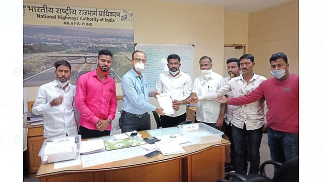 भोर तालुका युवक काँग्रेसच्या वतीने महामार्ग प्राधिकरणाचे प्रकल्प संचालक सुहास चिटणिस यांना महामार्ग प्राधिकरणाच्या कार्यालयात आज निवेदन देण्यात आले यावेळी युवक काँग्रेसचे तालुका कार्याध्यक्ष महेश टापरे, अनिल सावंत, महेश बोबडे, निलेश भोरडे, प्रकाश भोरडे, लहु साळुंके, हनुमंत कारभळ, प्रविण कोंढाळकर, सागर टापरे, आदी उपस्थित होते.