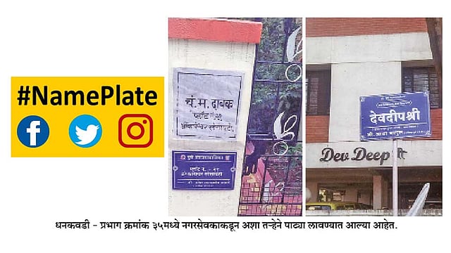 धनकवडी क्षेत्रीय कार्यालयातील प्रभाग क्रमांक ३५ मध्ये नगरसेवकांमध्ये बंगल्यांबाहेर पाट्या लावून देण्याची चढाओढ आहे. एका नगरसेवकाने घराच्या भिंतीवर पाट्या लावून दिल्यानंतर दुसऱ्या नगरसेवकाने रस्त्याच्याकडेला लोखंडी खांब उभारून त्यावर पाटी लावून दिली. पाट्या लावलेल्या प्रत्येक बंगल्याची किंमत जवळपास १ कोटी असताना त्यांच्यासाठी या पाट्यांची गरज होती का, असा सवाल आहे.