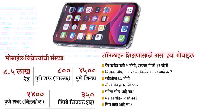अनलॉकनंतर जुलै व ऑगस्ट या दोन महिन्यांत सर्वाधिक तीन लाख वीस हजारांवर मोबाईल पुणे व पिंपरी-चिंचवड शहरामध्ये विकले गेले आहेत. हे सर्व मोबाईल मध्यमवर्गीय कुटुंबांनी पाल्याच्या ऑनलाइन शिक्षणासाठी व वर्क फ्रॉम होमसाठी घेतले असल्याचे पुणे जिल्हा ऑल इंडिया मोबाईल रिटेलर असोसिएशनचे अध्यक्ष सुधीर वाघमोडे यांनी सांगितले.