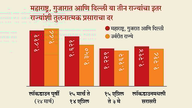 महाराष्ट्र, गुजरात आणि दिल्ली या तीन राज्यांत इतर राज्यांच्या तुलनेत प्रसाराचा दर अधिक.