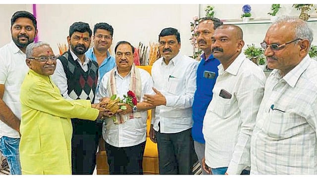 खडसे आपल्या खासगी दौऱ्यानिमित्त जळगावला जाताना रविवारी (ता. १२) शिक्रापुरात थांबले होते. या वेळी शेळके, माजी पंचायत समिती सदस्य राजेंद्र भुजबळ, उद्योजक शेखर दरवडे आदींसह कार्यकर्त्यांबरोबर खडसे यांनी चर्चा केली.