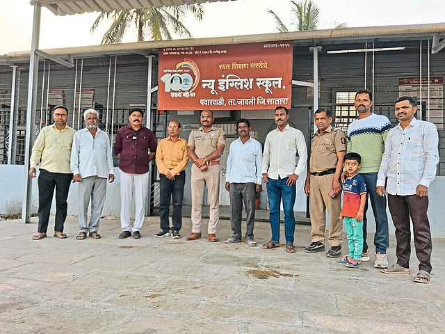 पवारवाडी (ता. जावळी) ः शाळेत एकत्रित जमलेले माजी विद्यार्थी. (प्रशांत गुजर ः सकाळ छायाचित्रसेवा)