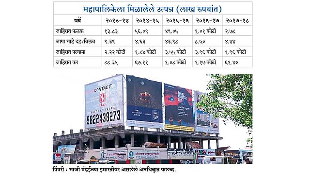 शहरातील पिंपरी, चिंचवड, भोसरी, निगडी, दापोडी, पिंपळे सौदागर, पिंपळे गुरव आदी भागांमध्ये अनधिकृत जाहिरात फलक पाहण्यास मिळतात. प्रत्येक विद्युत खांबावर एका जाहिरात फलकाला परवानगी असताना दोन फलक लावलेले दिसतात; तसेच झाडे, खासगी इमारतींवरही ते दिसतात. पीएमपीच्या बसथांब्यांवर जाहिरात पत्रके चिटकविल्याचे चित्र पाहण्यास मिळते.