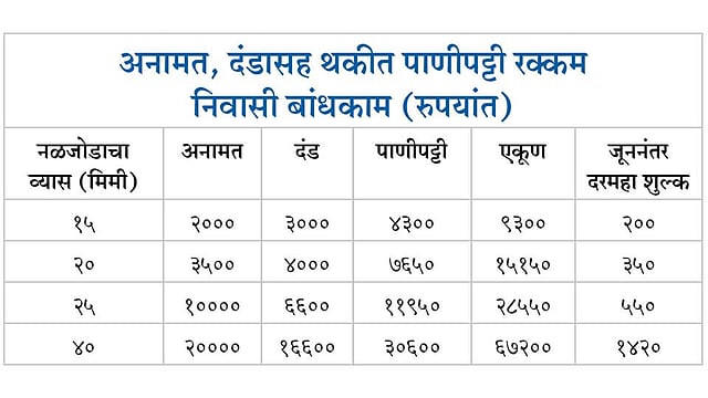या प्रस्तावानुसार अनधिकृत नळजोड कायम करण्यासाठी दंड आणि पाणीपट्टी आकारली जाईल. त्यासाठी संबंधितांनी ३० जूनपर्यंत महापालिकेकडे अर्ज दाखल करावयाचे आहेत. जूननंतर अर्ज करणाऱ्यांना दरमहा जादा शुल्क आकारण्यात येईल. महापालिकेने यापूर्वी ३१ मार्च २०१२ पूर्वीच्या अनधिकृत बांधकामांना असलेले चार हजार अनधिकृत नळजोड दंड आकारून नियमित केले. मात्र, २०१२ नंतरच्या अनधिकृत बांधकामांच्या नळजोडांबाबत धोरणात्मक निर्णय घेतलेला नव्हता. ते ग्राहक पाणी वापरतात; पण त्याचे कोठेही मोजमाप अथवा बिल नाही. राज्य सरकारने ३१ डिसेंबर २०१५ पूर्वीची अनधिकृत बांधकामे नियमित करण्यासाठी नियमावली बनवली. त्यामुळे डिसेंबर २०१५ पूर्वी अथवा त्यानंतर झालेल्या अनधिकृत बांधकामांचे अनधिकृत नळजोड नियमित करण्यासाठी महापालिकेने नवीन धोरण बनविले. त्याची अंमलबजावणी एप्रिलपासून करण्यात येईल.