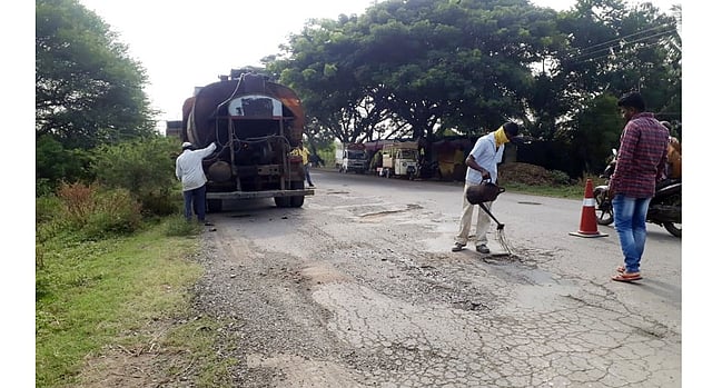 रस्त्यावरील खड्डे बुजविल्यानंतर प्रवाशांना दिलासा मिळणार आहे. शनिवार (ता.१०) रात्री पासुन इंदापूर-बारामती तालुक्यामध्ये परतीच्या पावसाने सुरवात केली असून पावसामुळे खड्डे बुजविण्याच्या कामामध्ये अडथळा येवू लागला आहे. बारामती ते इंदापूर राज्यमार्ग लवकरच संत तुकाराम महाराज पालखी महामार्गामध्ये समाविष्ठ होणार असून संपूर्ण रस्त्याचे कामच नव्याने होणार आहे. महामार्गाची भूसंपादनाची प्रक्रिया पूर्ण झाली असून शेतकऱ्यांना मोबदला देण्याचे काम सुरु आहे.