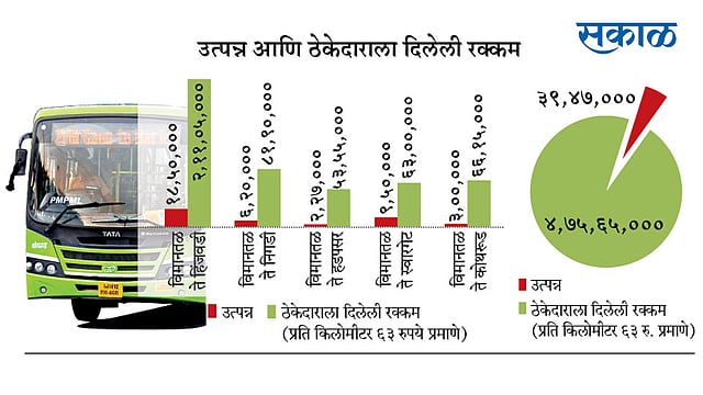पीएमपीएमएलचा कारभार कशा पद्धतीने सुरू आहे, त्याचे हे एक उदाहरण. पीएमपीएमएलला दैनंदिन संचलनात सुमारे पाचशे कोटी रुपयांची तूट येते. ती भरून काढण्यासाठी दोन्ही महापालिकांकडून पीएमपीने पैशांची मागणी केली आहे. त्यामुळे पीएमपीएमएलच्या कारभारावर नजर टाकल्यानंतर ही सेवा सुधारविण्याची गरज असल्याचे या उदाहरणावरून समोर आले आहे. या मार्गावरील बसचे उत्पन्न आणि त्यासाठी आलेला खर्च यांची माहिती ‘सकाळ’ने घेतल्यानंतर हा सर्व प्रकार उघडकीस आला.