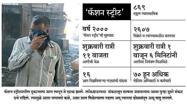 पुणे - लष्कर व कोंढवा परिसरात राहणाऱ्या छोट्या-मोठ्या व्यावसायिकांच्या, कामगारांच्या वर्षानुवर्षे उदरनिर्वाहाचे प्रमुख हक्काचे ठिकाण म्हणजे ‘फॅशन स्ट्रीट’. एक-दोन नव्हे, तर तब्बल अडीच हजार जण आणि त्यावर अवलंबून असणाऱ्या सुमारे ८ ते १० हजार जणांचे जगणे त्या एकट्या बाजारपेठेवर अवलंबून होते. पण, शुक्रवारी लागलेल्या आगीत केवळ बाजारपेठच जळून खाक झाली नाही, तर त्यावर अवलंबून असणाऱ्या हजारो कुटुंबांच्या तोंडचा घासही हिरावून घेतला गेला. ‘अब खायेंगे क्या, और जियेंगे कैसे भाई’ हे ताहिर शेख या तरुण विक्रेत्याचे काळजाला अक्षरशः चिरणारे शब्द या घटनेची दाहकता स्पष्ट करतात.