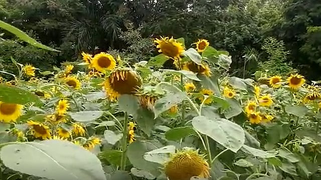 उद्यानातील साधारणतः दहा गुंठे जागेत नक्षत्र उद्यान आहे. त्यातील वाफ्यांमध्ये सुर्यफुलांची लागवड करण्यात आली होती. ती सुर्यफूले सध्या चांगलीच बहरली असून काहींमध्ये बिया भरल्या आहेत. फुलांमधील रस पिण्यासाठी विविध प्रकारच्या मधमाशा, कीटक, भुंगे फुलांभोवती पिंगा घालताना दिसतात तर, विणीचा हंगाम असल्याने विविध पक्षी येथे उपलब्ध असलेले सुर्यफुलांचे बी खाण्यासाठी गर्दी करीत आहेत.
