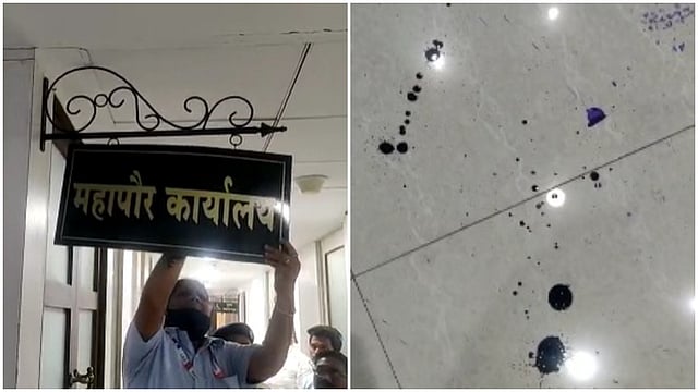 पुणे महापालिकेमध्ये राडा झाला असून महापौर कार्यालयाच्या फलकावर काळी शाई फेकण्यात आली आहे. वंचित बहुजन आघाडीच्या कार्यकर्त्यांनी हा प्रकार केल्याचं सांगण्यात येत आहे. पण यामुळं पालिकेतील सुरक्षा व्यवस्थेत वाढ करण्यात आली आहे. (Pune Municipal Corporation Ink thrown on the mayor office board)